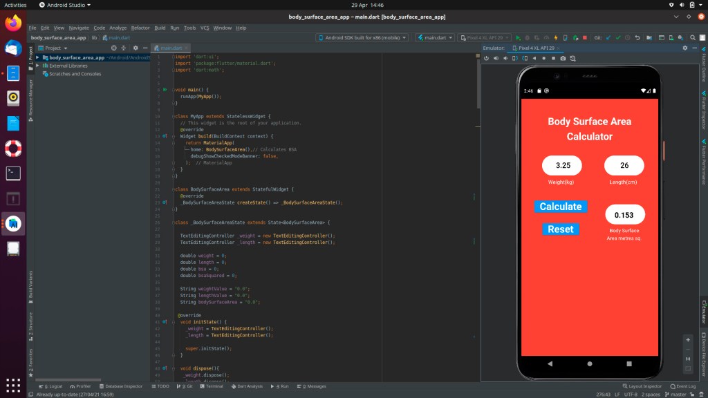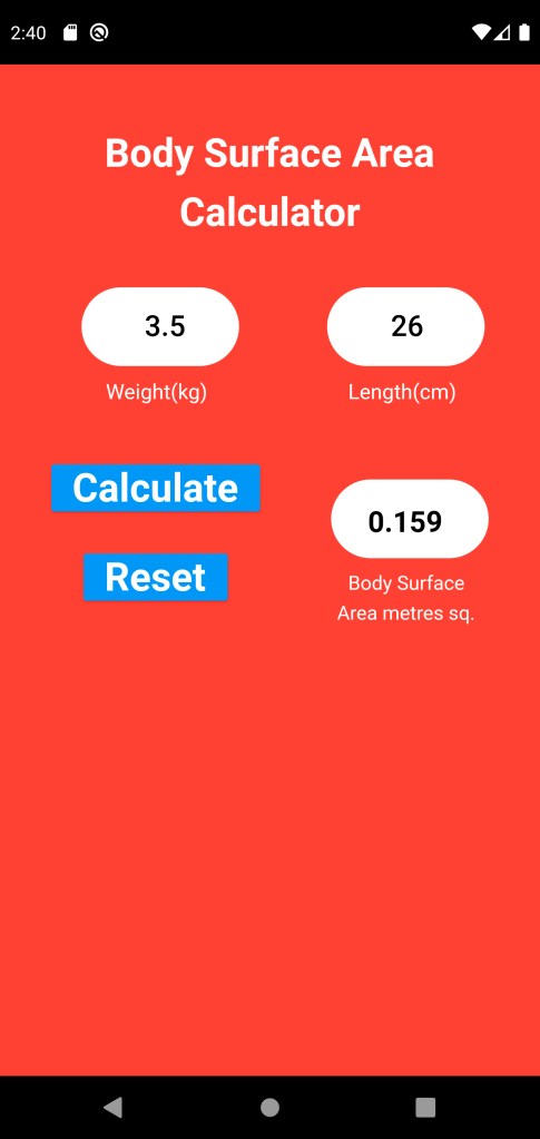 You have recently read about how I spent a bit of time studying Flutter and Dart with a free course from Udemy. The first personal project that I have commenced is to convert a medical calculations app that I initially created in Android. It included an app to calculate drug and fluid doses used in paediatric cardiac arrest, a body mass index calculator, a fluid infusion rate calculator, a body surface area calculator (used to calculate drug doses for babies), and two metric unit calculators which work in different ways (volumes and lengths). In it’s original form, the app would only work on Android devices. I wanted to present an app or a series of apps that can be used on both Android and iOS so to recreate them in Flutter would be one way of achieving that.