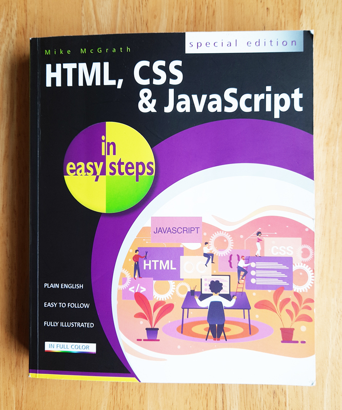 I decided to get stuck into the Javascript bit first so picked up a book called “A Smarter Way To Learn Javascript” by Mark Myers – basically, 10 minute chapters followed by Free interactive exercises to make it stick – what’s not to like – experiental learning. The first chapter advised to get a grounding in HTML and CSS first, so I turned HTML, CSS and Javascript in Easy Steps.